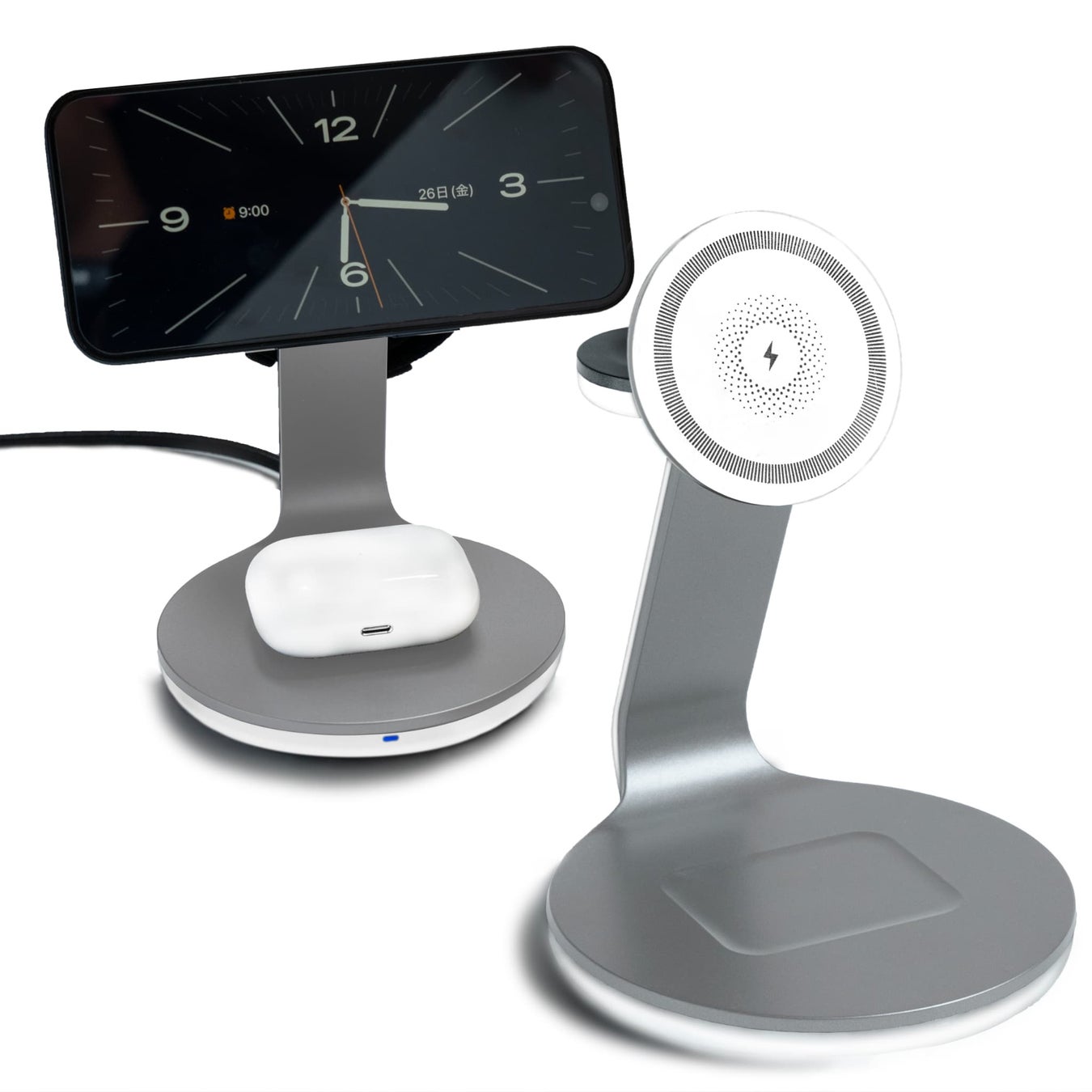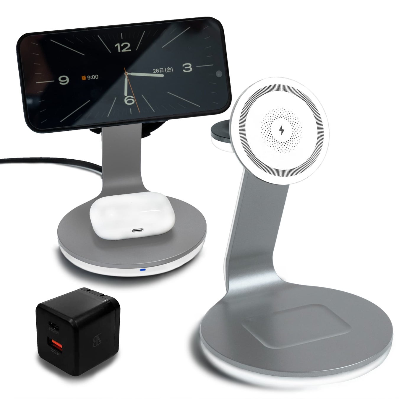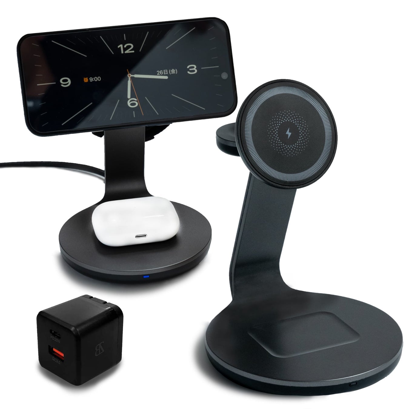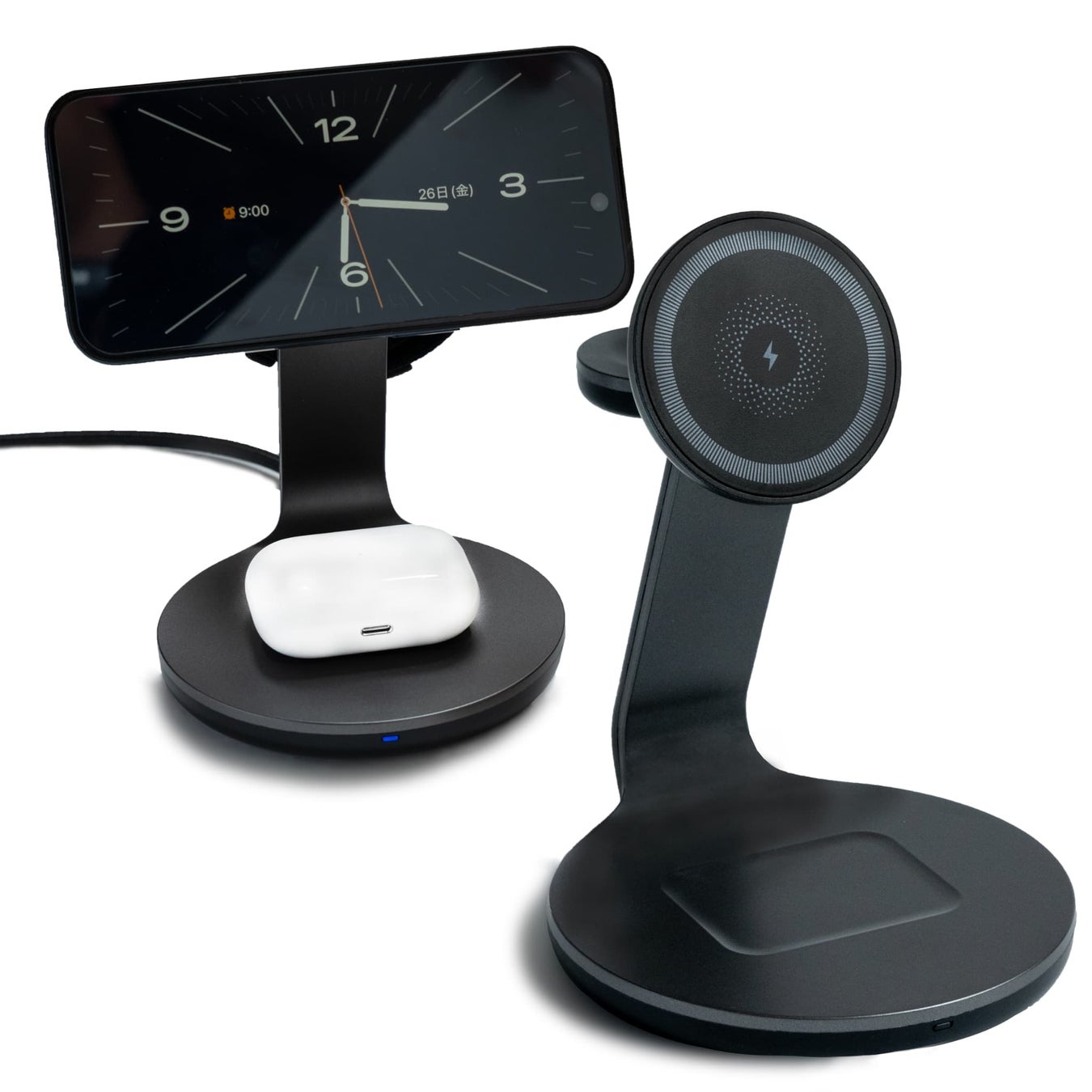 マグセーフ対応スマートフォン、Apple Watch、AirPodsを同時に「まとめて」充電が可能。