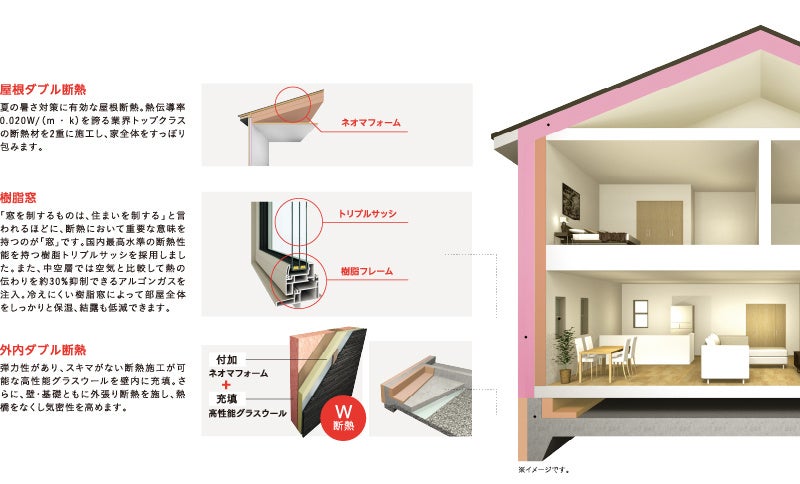 本商品は、日本の断熱等級の中で「最高等級7」の基準をクリアし、外気の影響を受けにくく、夏は涼しく冬は暖かい”魔法瓶”のような住宅で、 快適性と環境性を追求した理想の住まいとなっています。