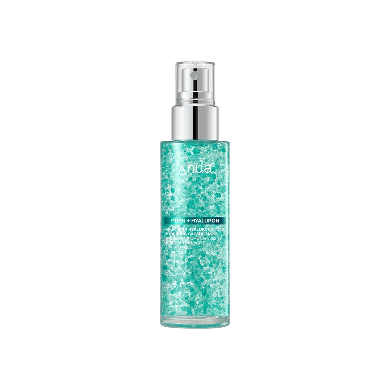 今回登場する「PDRNヒアルロン酸ハイドレイティングミスト」は、肌にうるおいやハリを与える「ヒアルロン酸*¹」「コラーゲン*²」「PDRN*³」を閉じ込めたANUA PDRN CAPSULE™配合の保湿ミストです。スプレーした瞬間に、エメラルド色のグロウオイルビーズが均一に広がり角質層のすみずみまで水分を満たし、うるおいによってツヤのある水光肌を演出します。