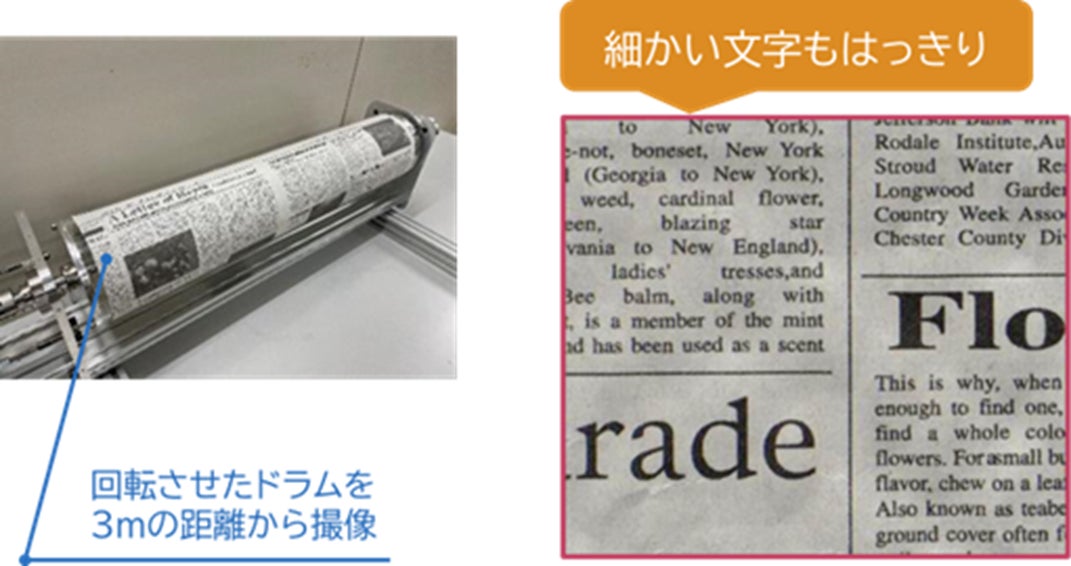 スキャナ方式のため、光学解像度最大300dpiと深い被写界で歪みが少なく、かつ省スペースで光学性能の両立が可能です。またラインカメラのため、移動体の撮像に最適で、長尺撮像でも安定した条件での撮像ができます。