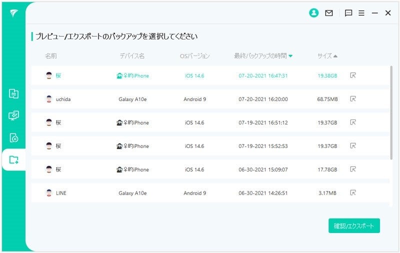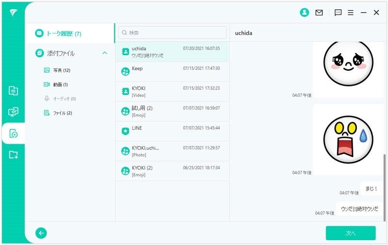 復元する前にデータの内容を確認可能で、iTunes/iCloudバックアップファイルからLINEデータを自由に取得できます。