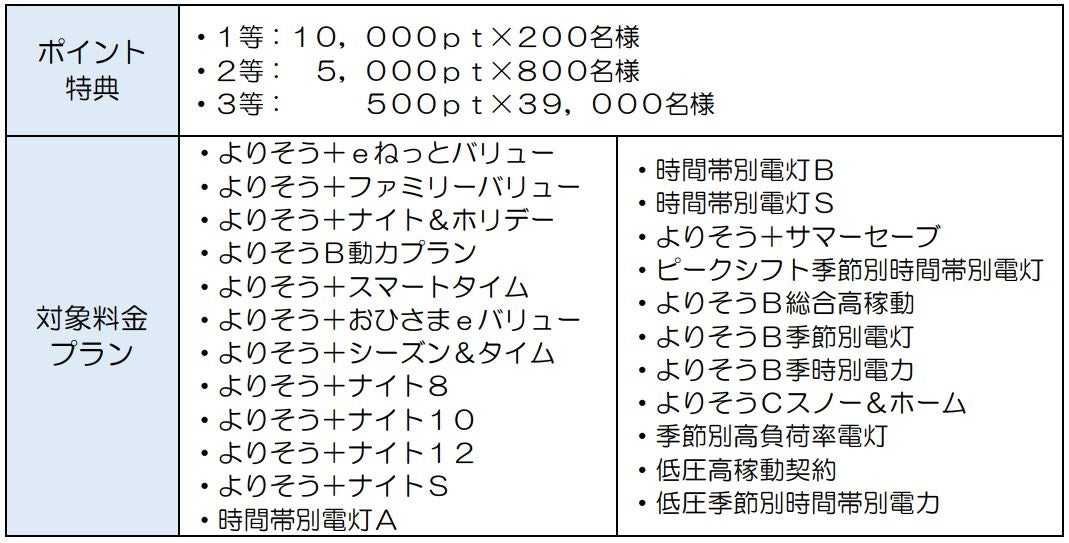 東北電力の会員制Webサービス「よりそうeねっと」の会員で、対象の自由料金プランに加入いただいているお客さまの中から、抽選で40,000名様によりそうeポイントをプレゼントいたします。