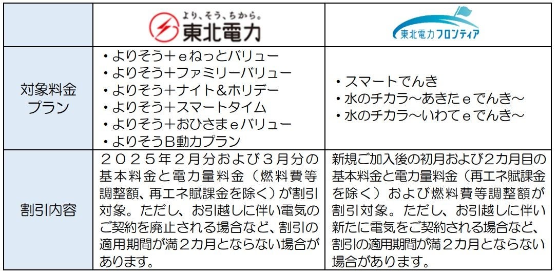 ・新たに東北電力フロンティアとご契約いただき、対象の自由料金プランにご加入いただいたお客さまの電気料金2カ月分を15%割引いたします。