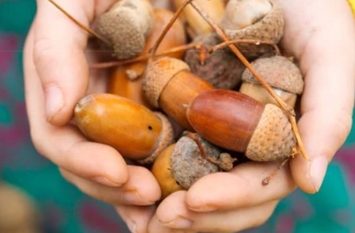 子どもたちが大好きなどんぐり拾い。日々子どもを片手で抱っこをしての動作で鍛えられたママ・パパは、子どもを片手で抱っこした状態で、制限時間内にどれだけどんぐりを拾ってバスケットに投げ入れられるか?!