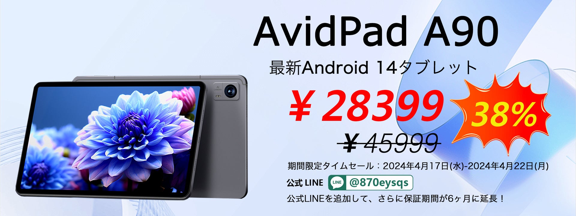 期間限定セール最後9時間:3円以下で12インチ大画面G99高性能Android 14タブレットを手に入れる AvidPad A90