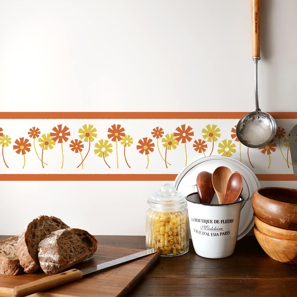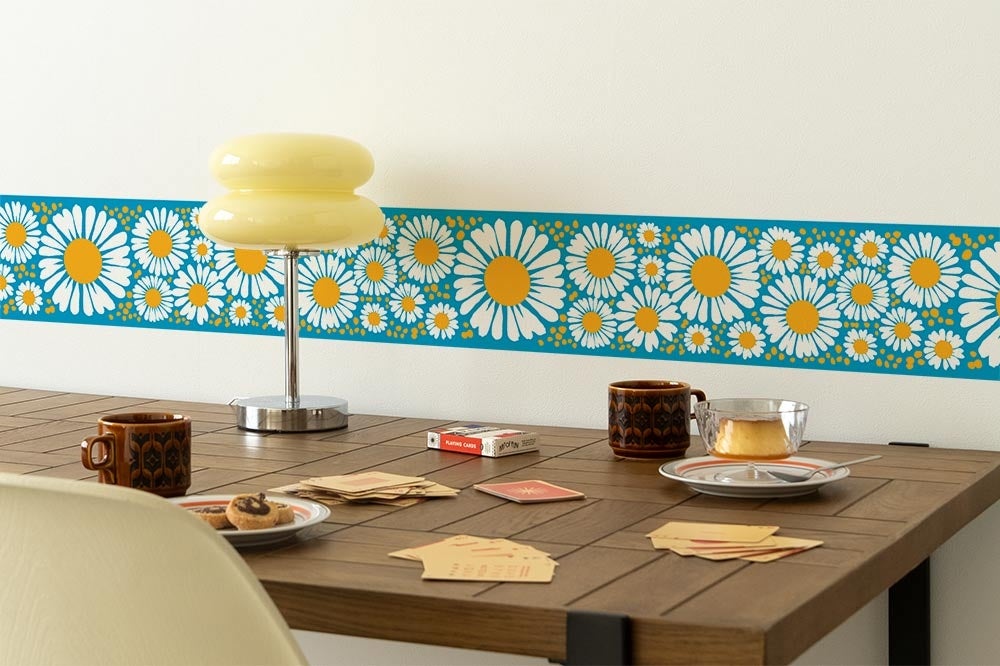 壁紙の見切りやアクセントに貼られる帯状の壁紙をトリム、またはトリムボーダーといいます。ステッカータイプのトリムで、壁に一筋のレトロなアクセントをいかがでしょう!