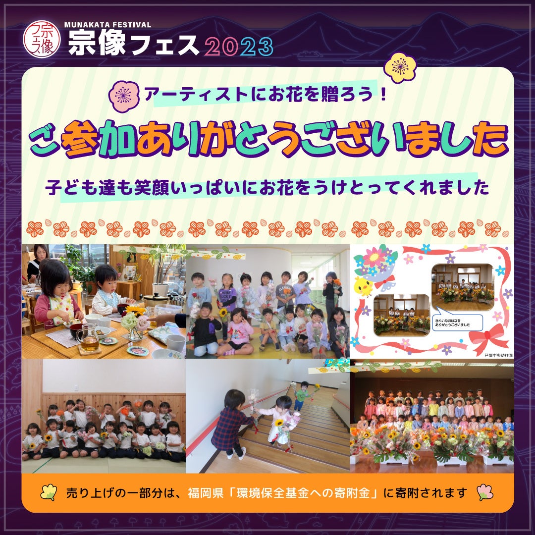 宗像フェスは毎年恒例で「子ども達へお花と笑顔を届けるプロジェクト」として「FLOWER SMILE PROJECT」を行っています。