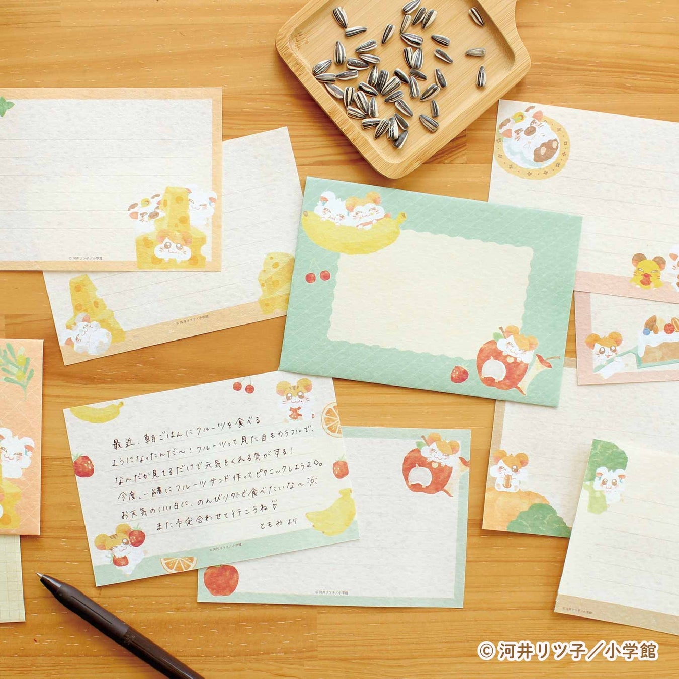 かわいいハムちゃんずがワンポイントデザインのミニレターセットです。