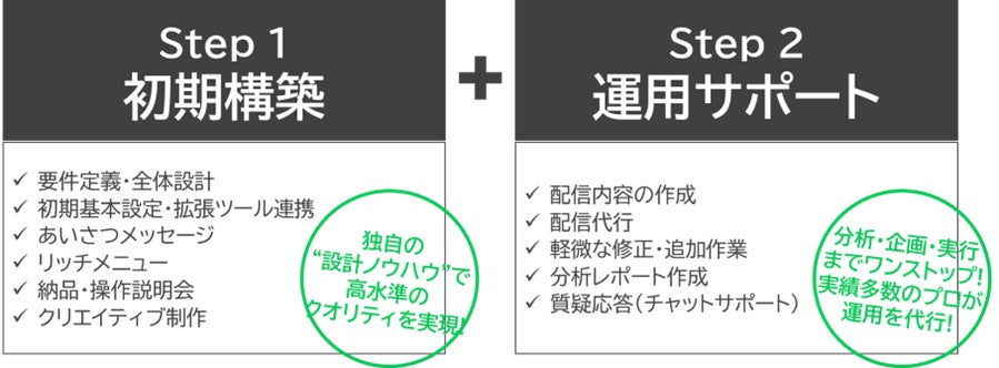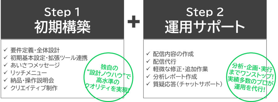 など、LINE公式アカウントの導入だけではなく、毎月多数のアカウントを運用しているため、さまざまな運用ノウハウを持っています。