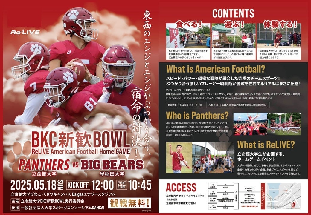 今回の『Re/LIVE』は、2025年5月18日開催。立命館大学PANTHERS VS 早稲田大学 BIG BEARS、東西のエンジとエンジがぶつかる宿命の対決が開催されました。