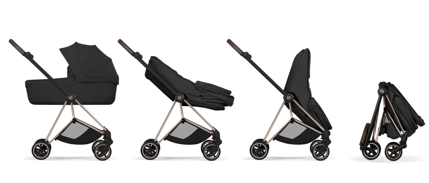 Mios/Coya Fold Carry CotはMIOS - StyleとCOŸA - Styleに装着が可能で、どちらのベビーカーでも折り畳みが可能です。