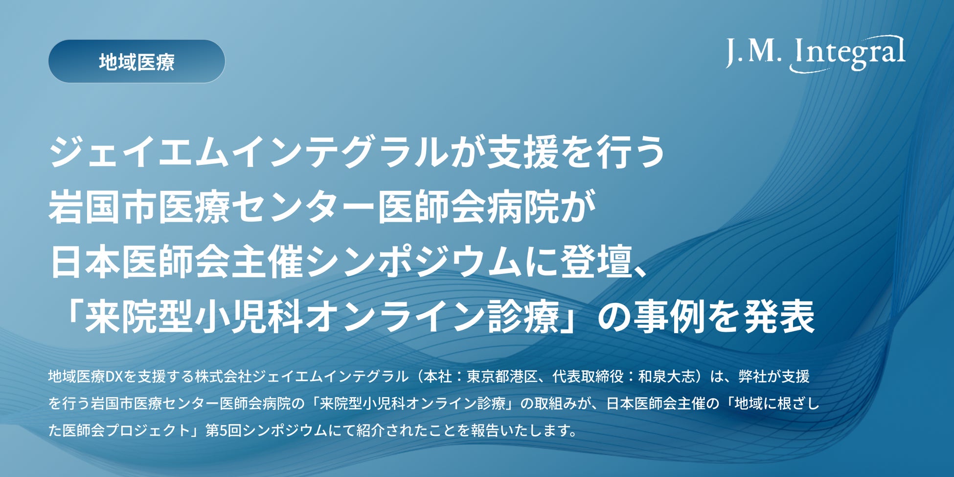 ジェイエムインテグラルが支援を行う岩国市医療センター医師会病院、日本医師会主催シンポジウムに登壇。「来院型小児科オンライン診療」の事例を発表。