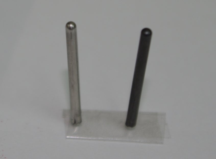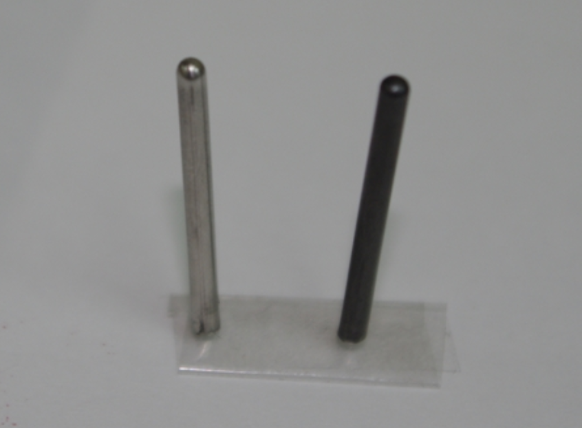 外径が2㎜、内径が1.8㎜と非常に繊細な部品です。使用したステンレス板の薄さはなんと0.2㎜。高度な技術と加工の知識がなければ実現できない製品です。
