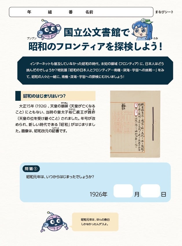 独立行政法人国立公文書館(所在地:東京都千代田区、館長:鎌田 薫)は、令和8年3月20日(金・祝)~5月24日(日)の間、令和8年春の特別展 昭和100年記念特別展「昭和の日本人とフロンティア―南極・深海・宇宙への挑戦―」を開催いたします。