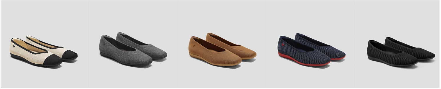 アッパーには全方位ストレッチニットを採用し、幅広・甲高の足にもやさしくフィットします。スクエアトゥ×Vカットのシルエットは、足元を美しく見せながらどんなスタイルにも馴染むミニマルデザインです。GRS認証の「Repreve®」リサイクルニットアッパーや、天然よもぎを使用したインソール、EVAと天然ゴムのアウトソールを採用し、地球に優しいVIVAIAの理念を徹底的に体現しています。発売以来、累計5万足を突破し、「靴難民の私の救世主」といった喜びの声が多数届いています。