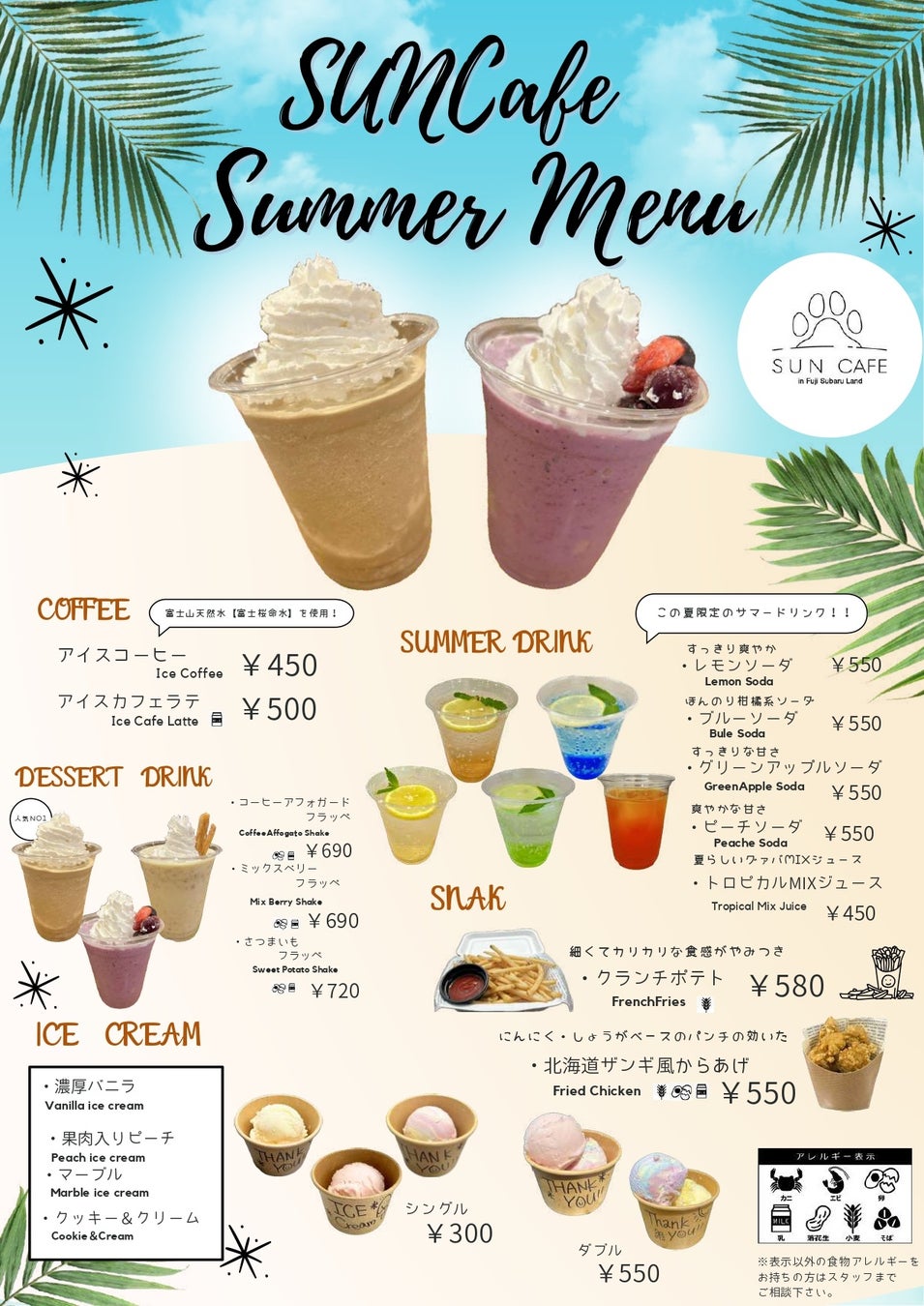 夏休みは富士山の麓、「富士すばるランド」へ。夏季限定の2つのカフェがオープン!「富士桜キッチン」・「SUNカフェ」が7月13日(土)から登場!さらに「じゃぶじゃぶプール」やお得なトワイライト営業も!