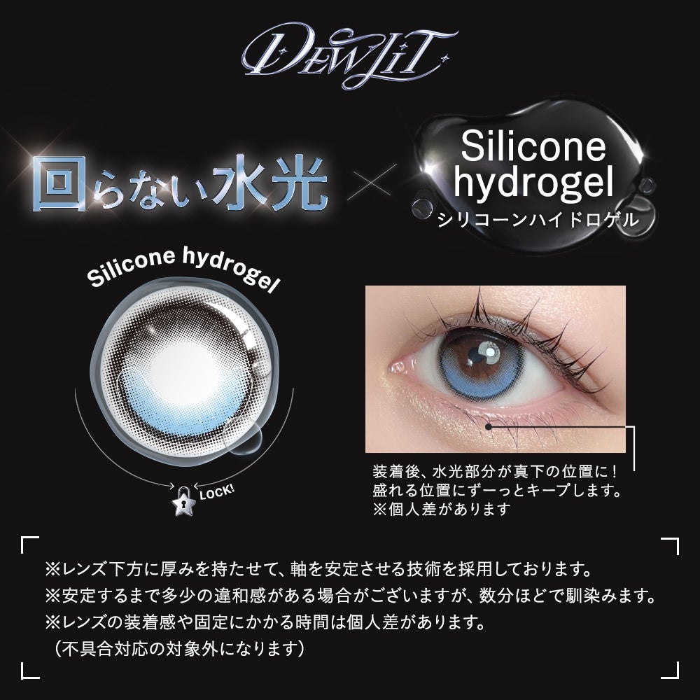 シリコーンハイドロゲル素材で、“回らない水光レンズ”特有の不快感を軽減。