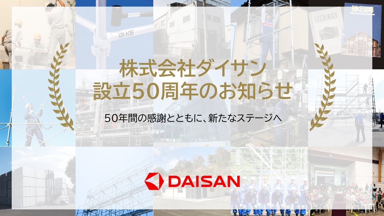 株式会社ダイサン(代表取締役社長:藤田武敏)は、2025年4月1日をもちまして設立50周年を迎えました。この大きな節目を迎えることができましたのは、ひとえに日頃よりご愛顧いただいておりますお客様、地域社会の皆様、そして関係者の皆様のご支援の賜物と心より感謝申し上げます。従業員一同、50年間の感謝を胸に、当社パーパスである「人と現場を守り抜く」の実現を通じて社会課題の解決に貢献し、新たなステージを目指してより一層努力してまいります。