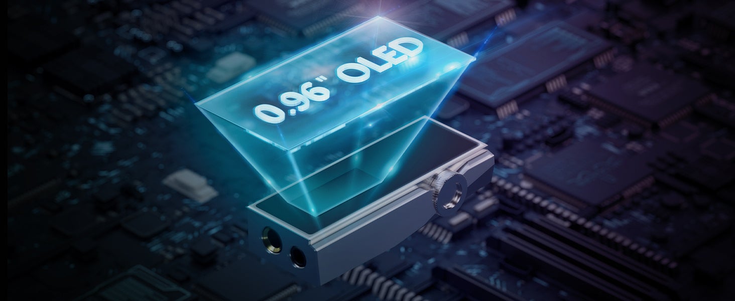 DC07PROは設定項目とステータスの表示に対応した、0.96インチOLEDディスプレイと本体マルチファンクションダイヤルを搭載し、ディスプレイとダイヤルで、内部設定へアクセスと閲覧が可能です。