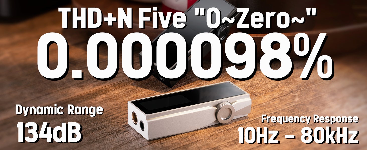 ポータブルデバイスの開発で培った技術を惜しみなく投じることで、ファイブゼロレベルの「THD+N:0.000098%」を実現しました。