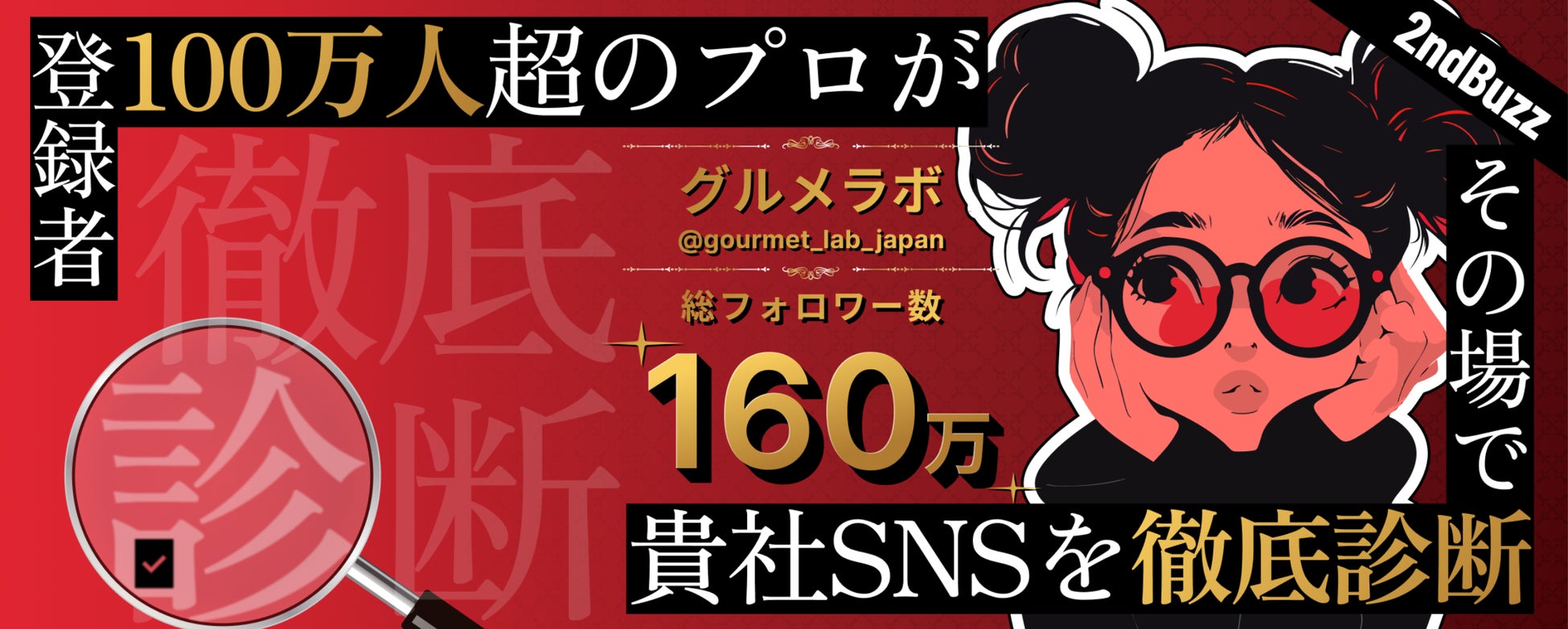 100万フォロワーの実績を持つプロが、独自開発の「バズメーター」を用いて貴社のSNSアカウントを無料で診断します(通常3万円相当)。