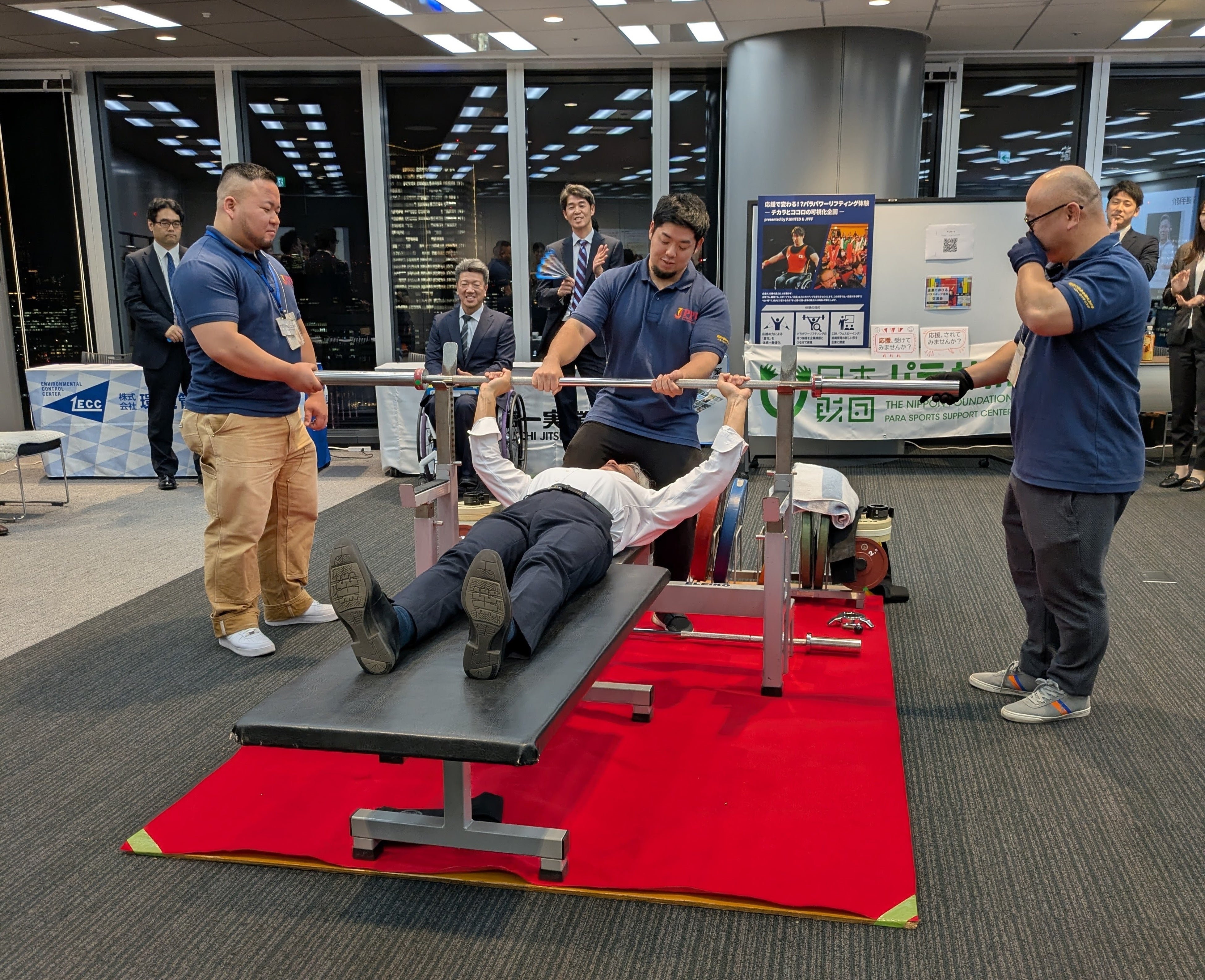 パラ・パワーリフティング体験会では、16名が挑戦、総重量745kgを持ち上げる熱狂を共有しました。