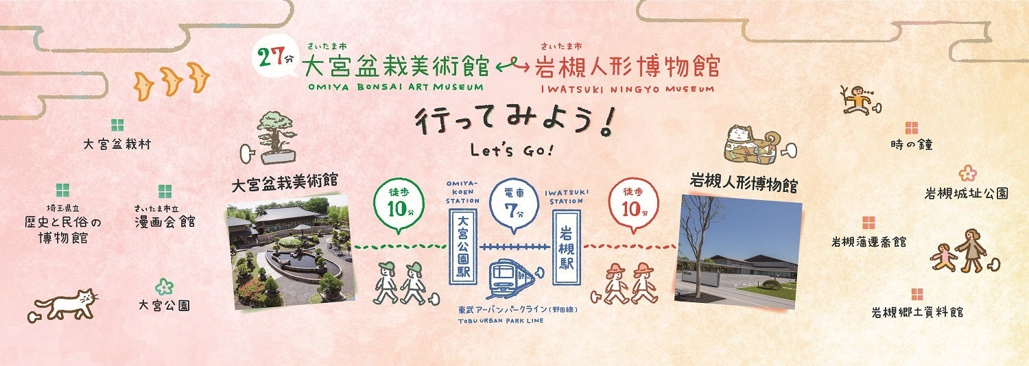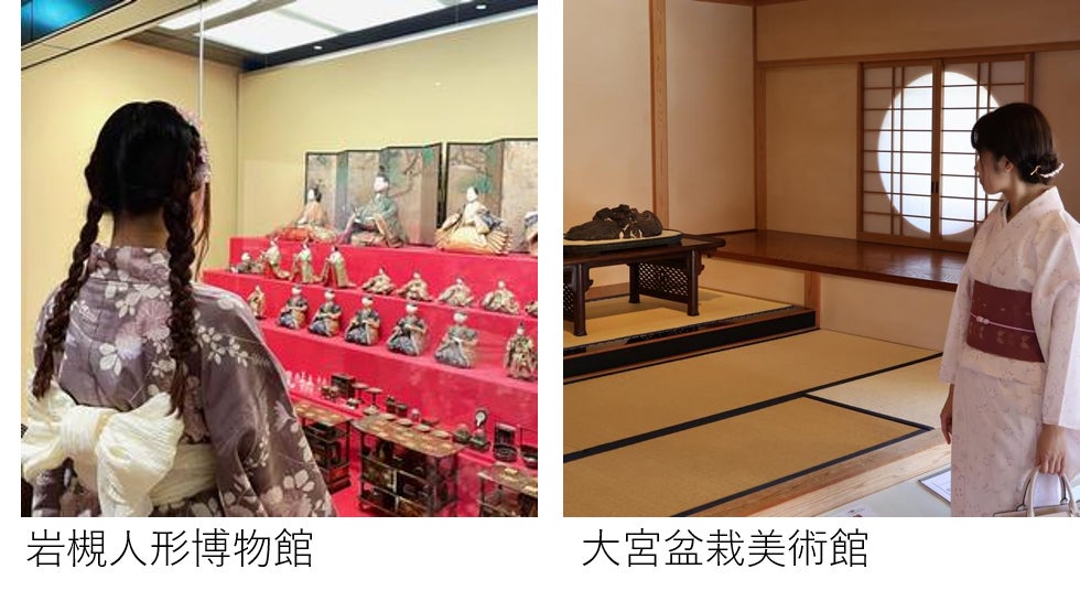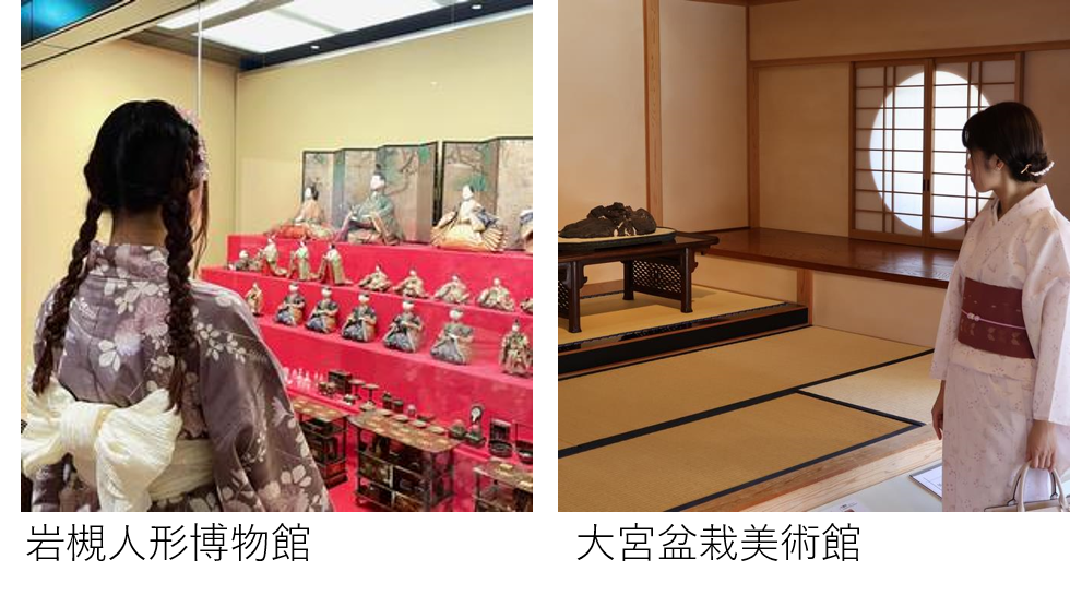 開催期間中にゆかた(着物可)で岩槻人形博物館及び大宮盆栽美術館に来館すると、観覧料が無料になります。