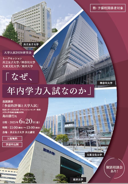 2025年6月20日に共立講堂にて、学習塾・予備校関係者を対象に大学入試2026研究会「なぜ、年内学力入試なのか」を開催します。