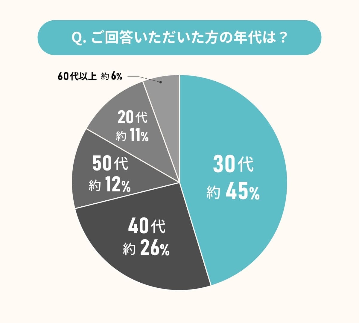 まずは回答者の年代と男女の割合に関してご紹介します。