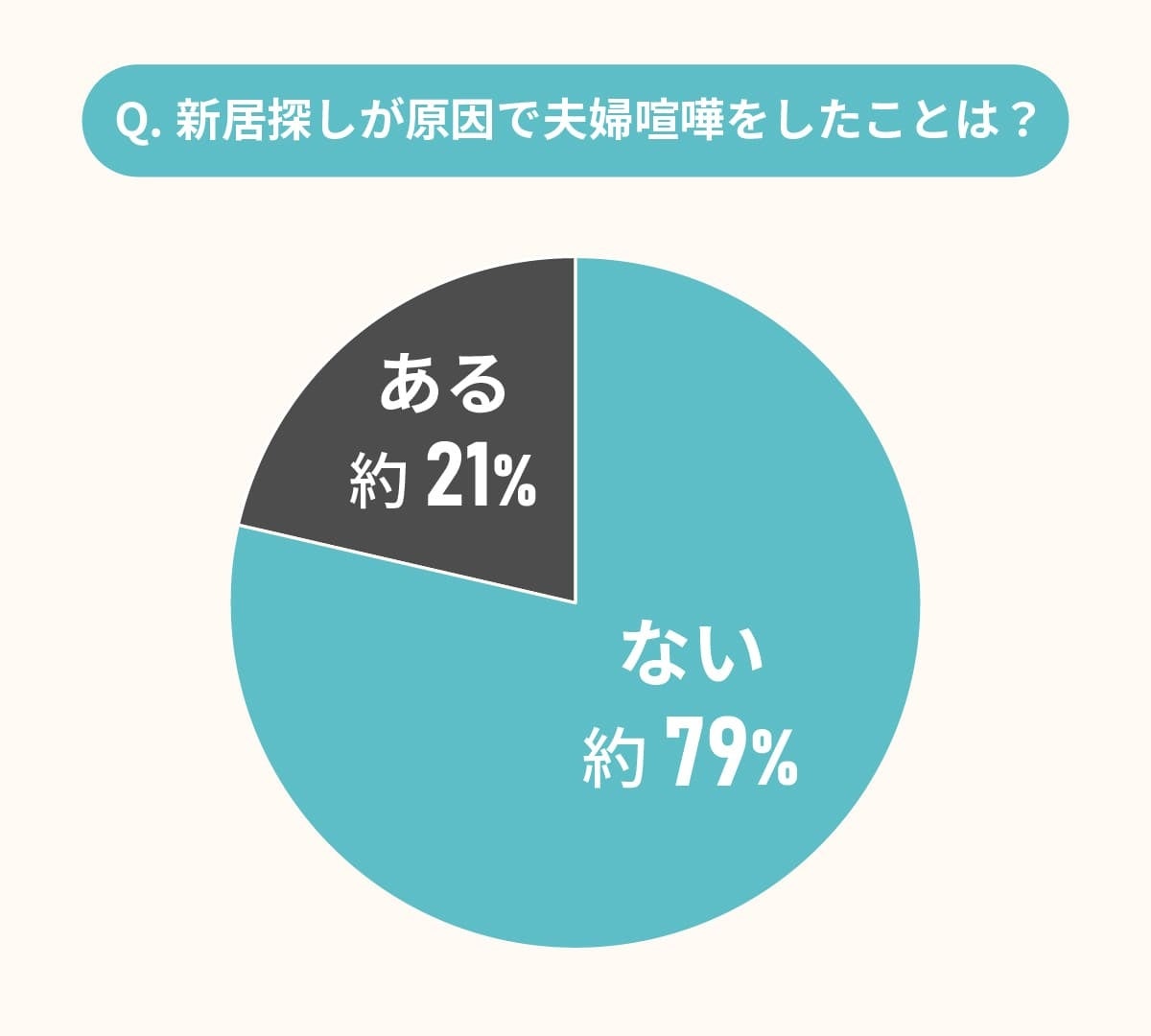 新居探しが原因で喧嘩をしたことがあると回答した人は約21%、喧嘩をしたことはない人は約79%でした。この約2割の人が新居探しが原因で喧嘩をしたことがあるとのことですが、その原因は何でしょうか。