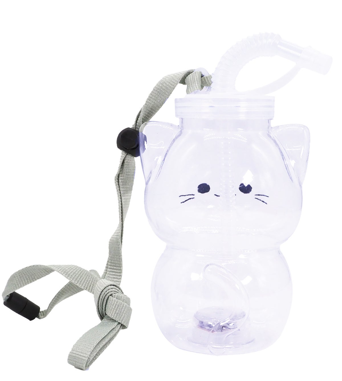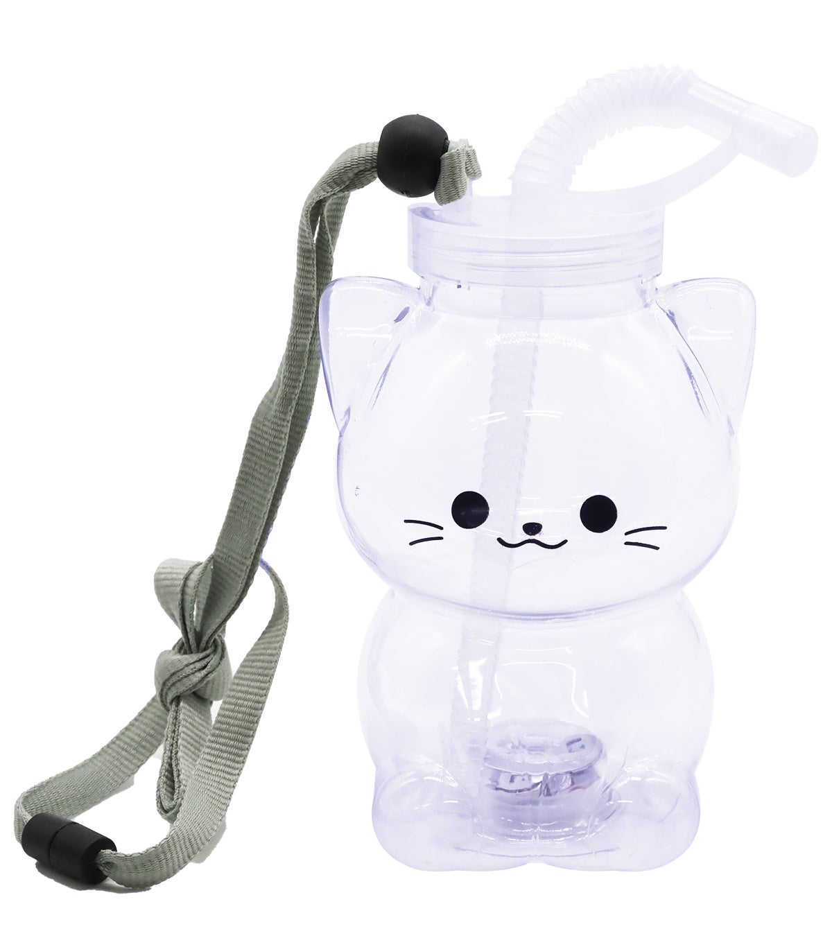 本商品は、ネックストラップ付きで持ち歩きもラクラクな、ネコちゃん型の光るボトル。