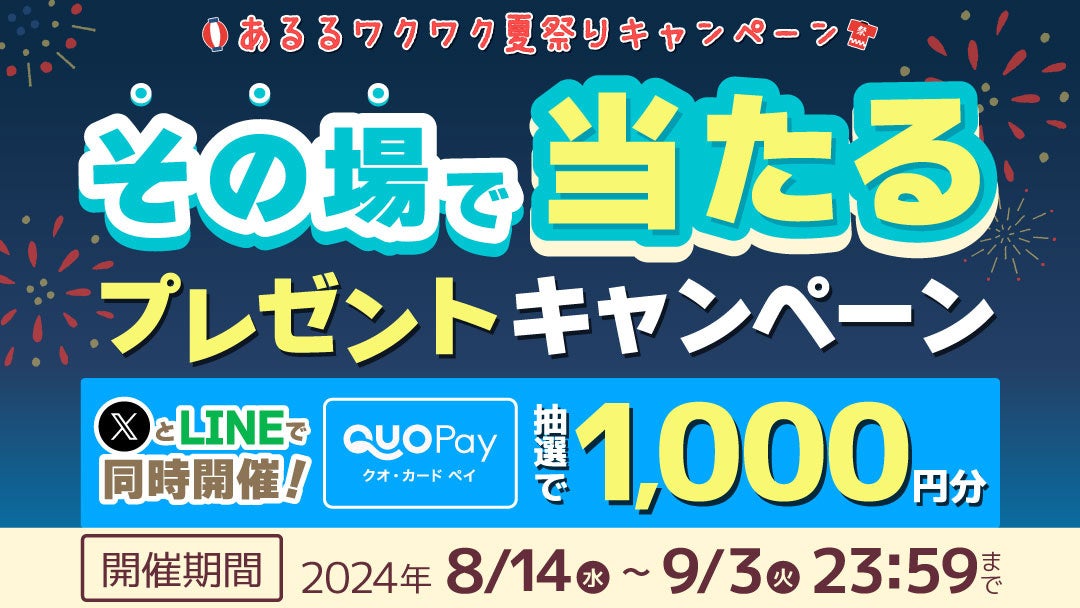 【その場で当たる!】クオカードペイ1000円分をプレゼント!XとLINEで参加できるダブルチャンスキャンペーンをあるるモールが開催