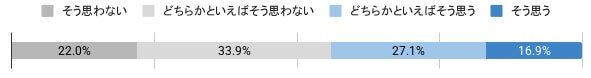 「そう思う」「どちらかといえばそう思う」は合わせて約32%となり、多くが満足度の低下は感じていないことが分かりました。