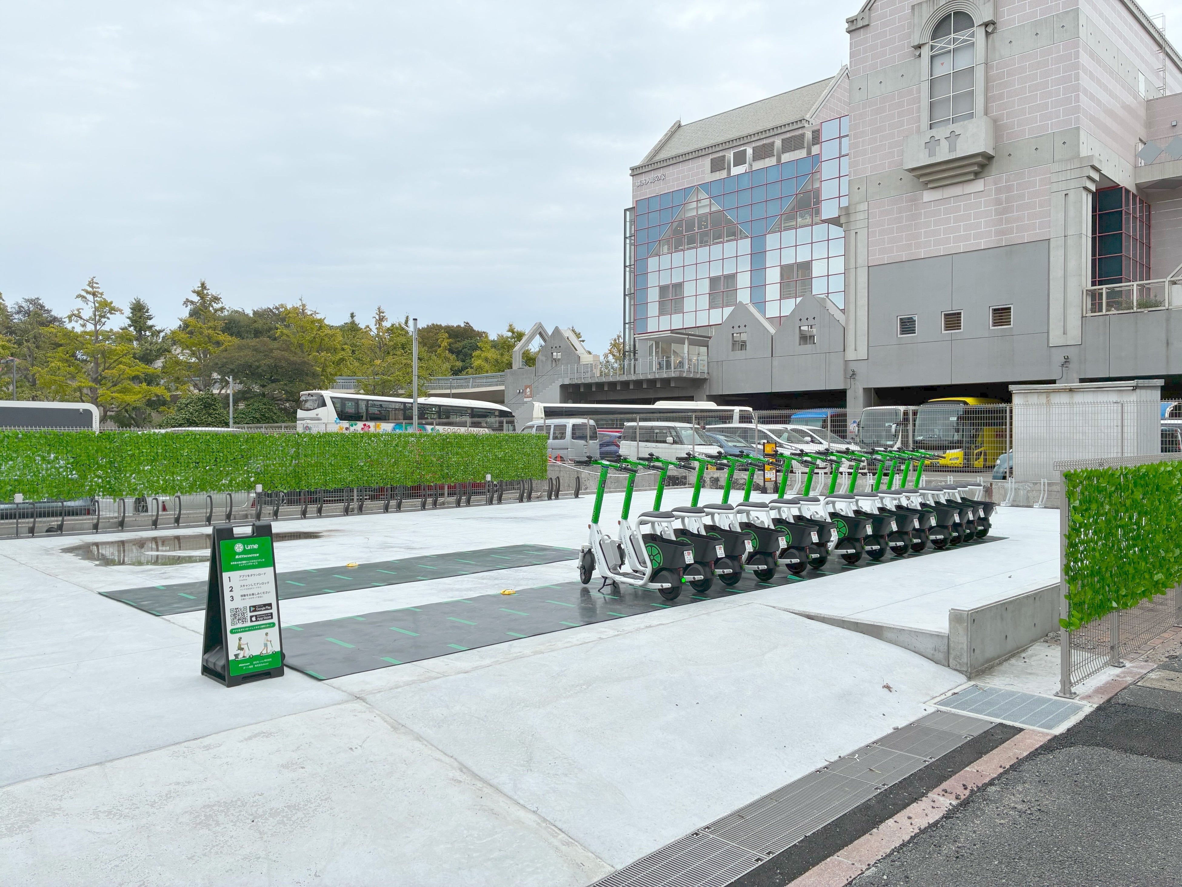 メルパルク横浜跡地のシェアモビリティ拠点「JP BAYSIDE HUB」にLimeが参画、座って乗れる「Limeラクモ」を導入し11月オープン