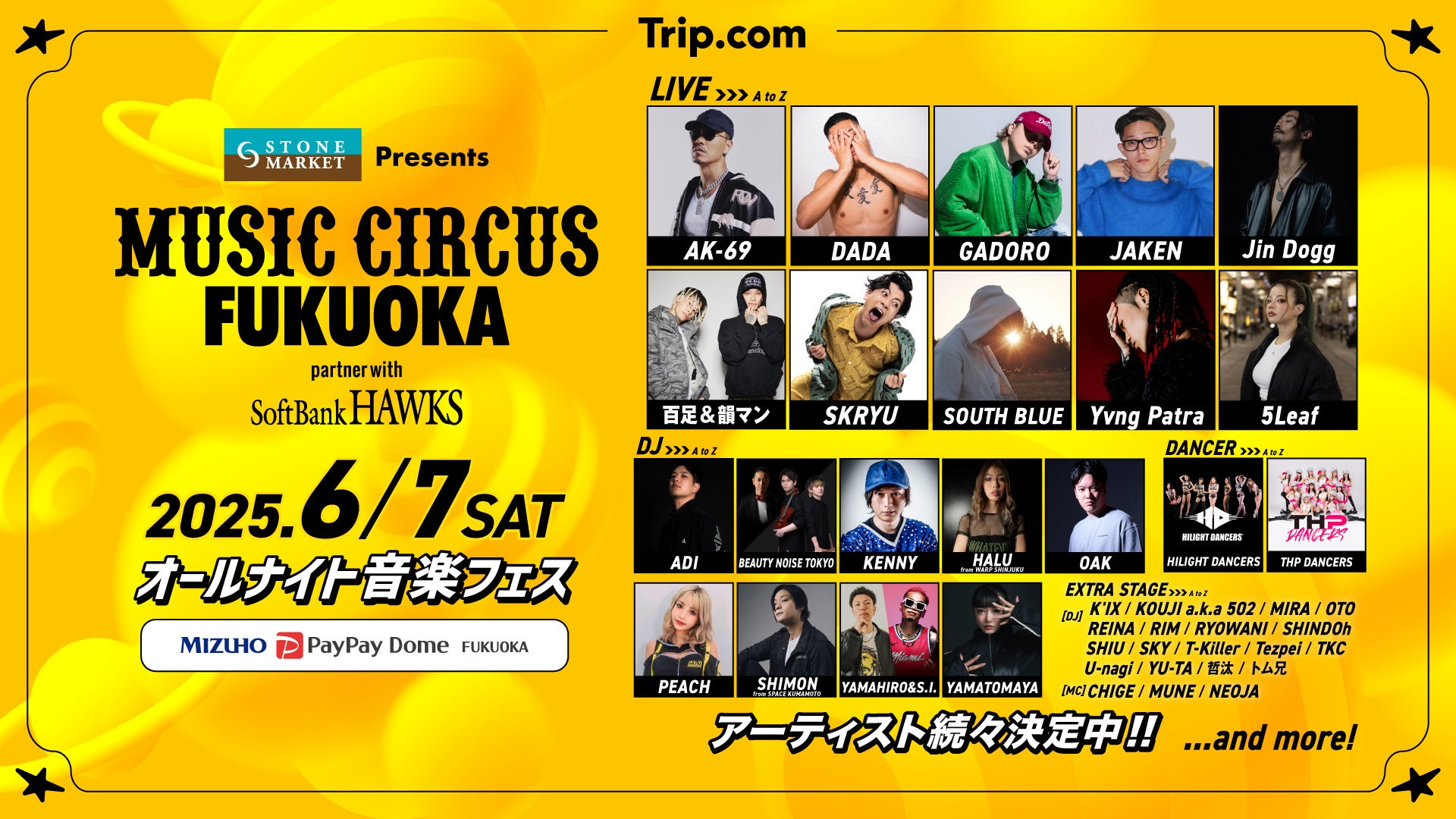 【福岡】「STONE MARKET Presents MUSIC CIRCUS FUKUOKA partner with SoftBank HAWKS」ストーンマーケットスペシャルステージ出演者発表!
