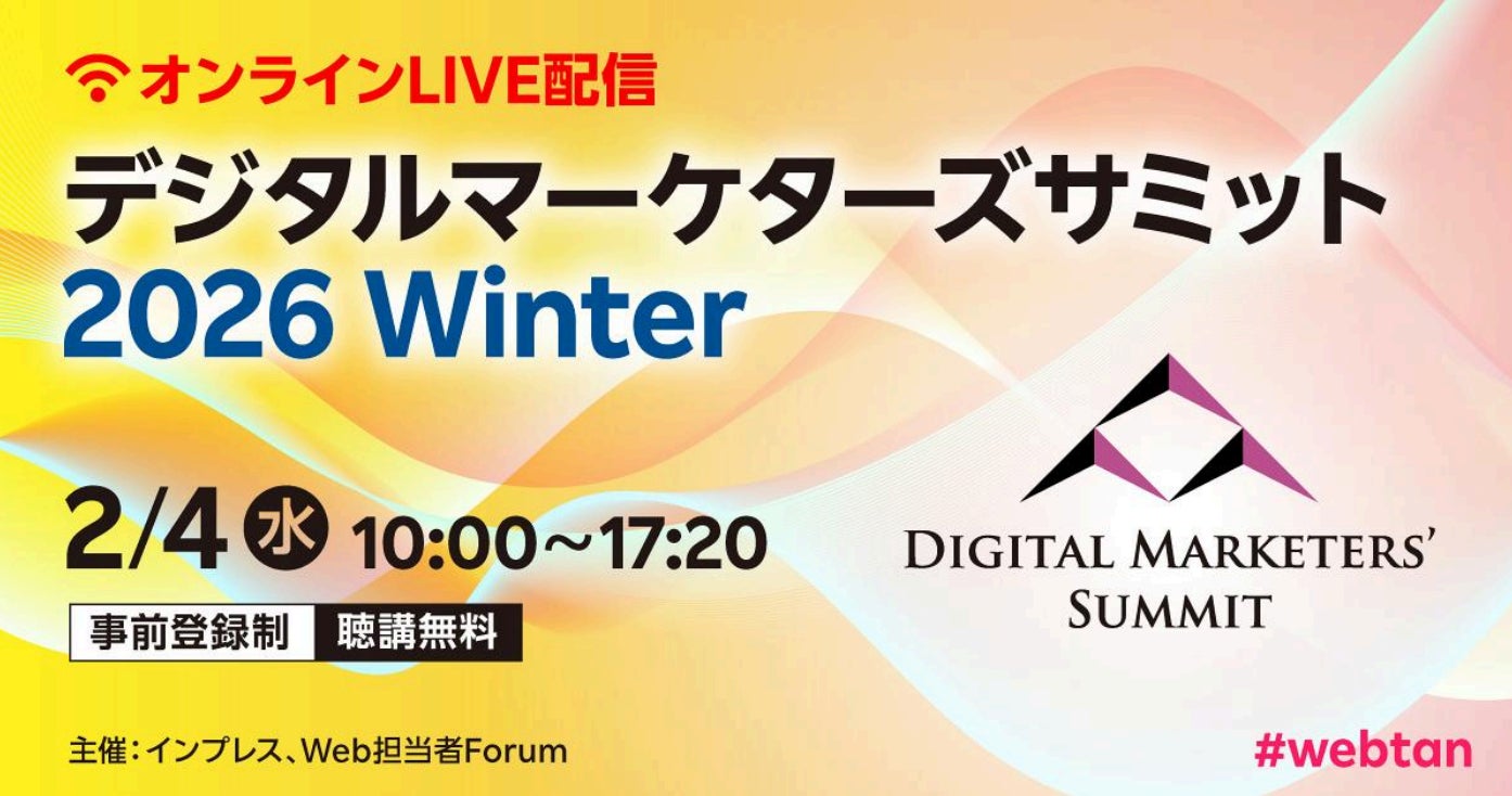 株式会社AI Hack(本社:東京都港区、代表取締役:中道大輔、以下AI Hack)の代表取締役である中道大輔は、2026年2月4日(水)に開催される株式会社インプレス主催「デジタルマーケターズサミット 2026 Winter」に登壇することをお知らせいたします。