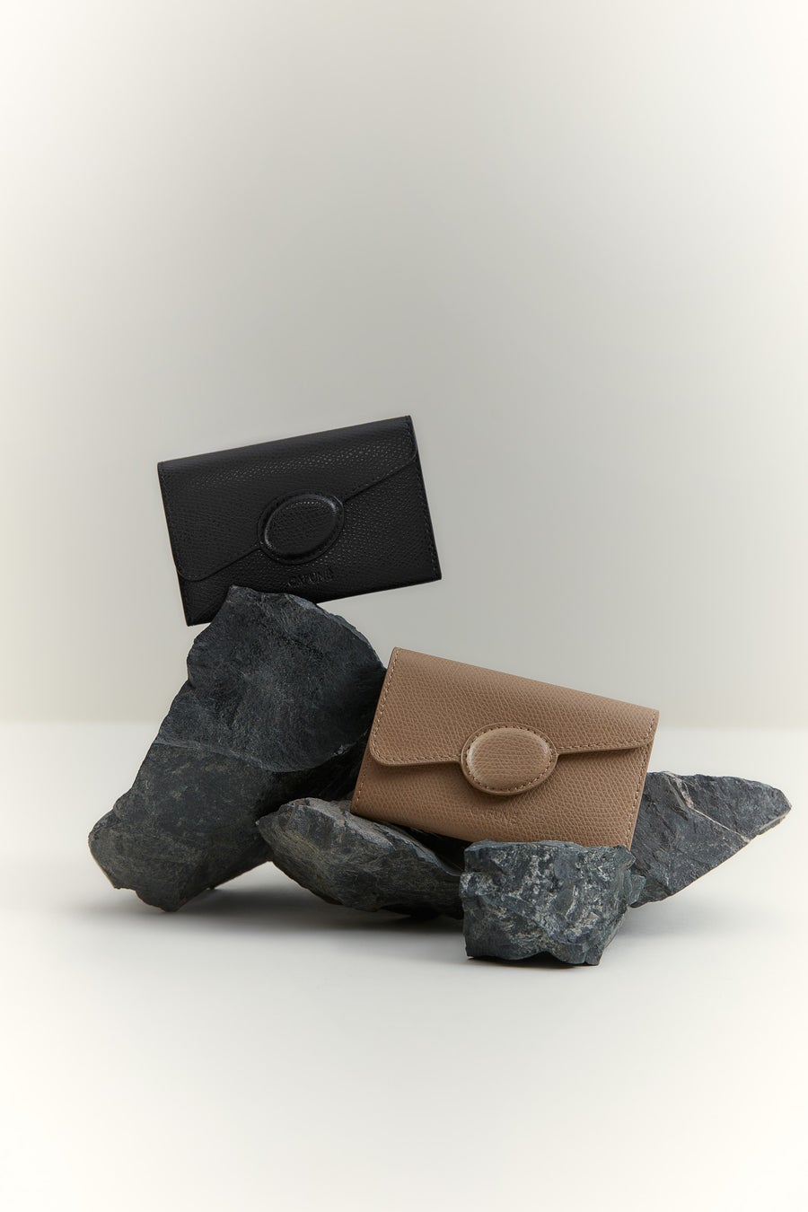 上質なイタリア製のテクスチャード/ペブルドレザーにはBasaltモチーフをマウントし、さりげなくグレードアップ感を醸成。スリムなデザイン、軽量コンパクトで、使いやすさと収納しやすさを両立。スナップボタンで開け閉めしやすく、デュアルスロットも2か所に装備し、カードから名刺まで、すっきりと整理して持ち運べます。