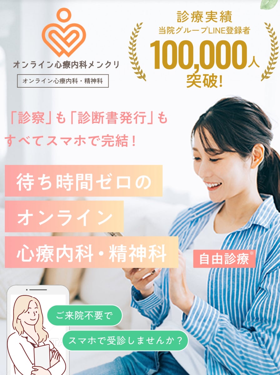 「メンクリ」はオンライン診療のみならず、診断書やお薬の自宅配送まで対応しております。