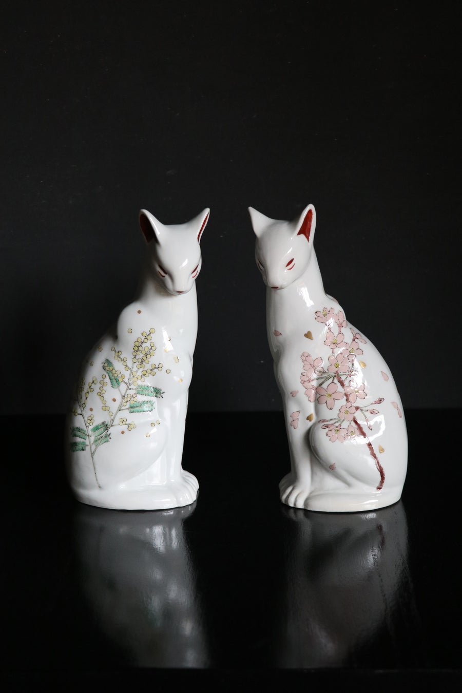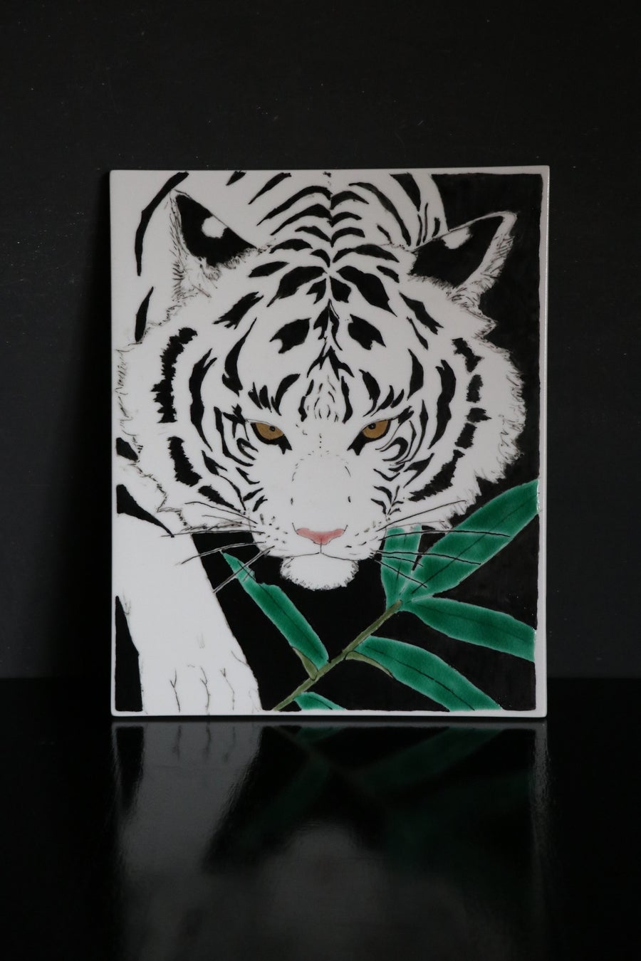 花の作品は実用的な食器を中心に、白い動物の作品は置物や陶板、酒器などの縁起物をそれぞれ制作いたしました。花はスケッチを基に余白を生かした構図を作り、中間色を生かした和絵の具で絵付けをしています。今回の展示では私のもっとも好きな花である鬼百合をメインに、花のもつ様々な表情を作品に落とし込みました。