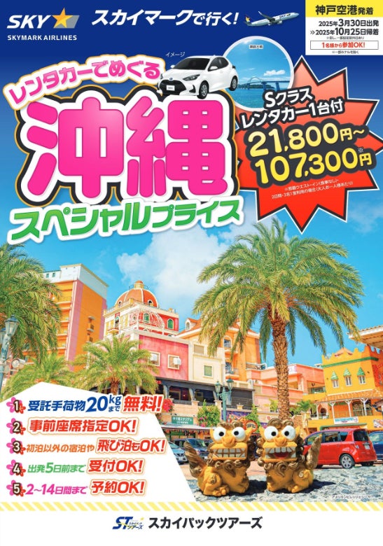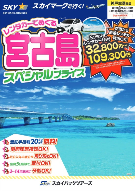 スカイパックツアーズ株式会社(本社:東京都中央区、社長:横山正巳)は、スカイマーク公式サイトで販売するダイナミックパッケージ「たす旅」で、「期間限定♪クーポンキャンペーン!!」を2025年5月8日(木)から2025年5月30日(金)までの期間限定で行います。