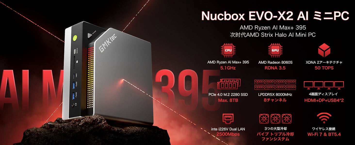GMKTECは、革新的なミニPCを開発・製造するグローバルブランドです。日本市場向けには、テレワーク・ビジネス・ゲーミング・教育用途までカバーする高性能コンパクトPCを展開。省スペース性と拡張性、そしてデザイン性を兼ね備えた製品ラインアップで、ユーザーに新しいコンピューティング体験を提供します。