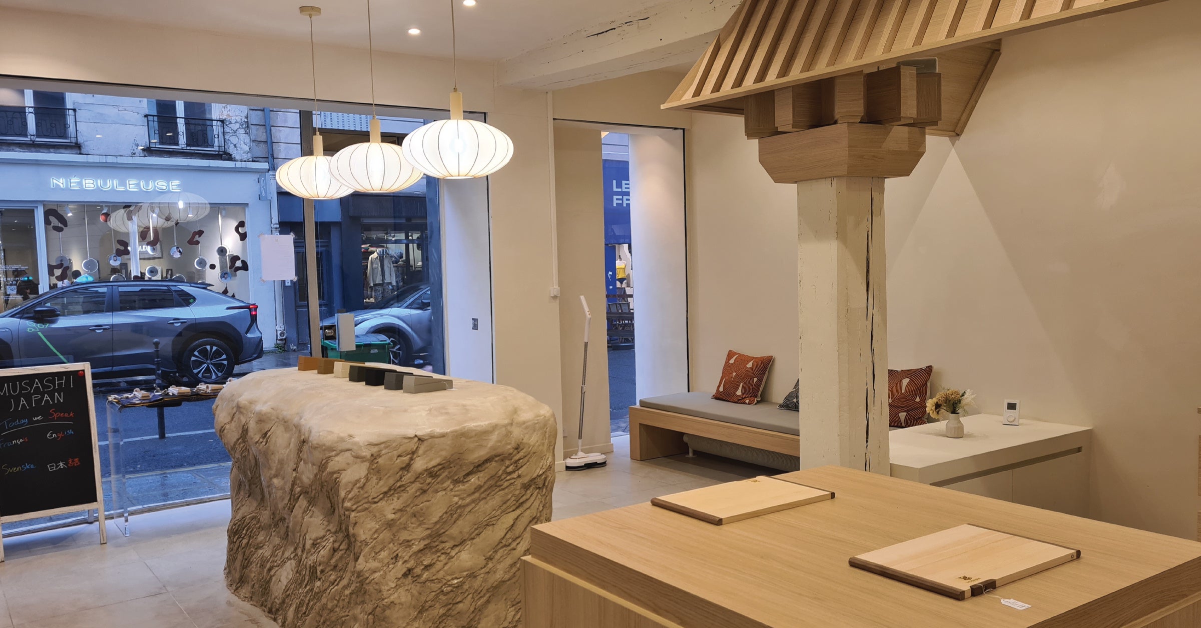パリにオープンした「MUSASHI JAPAN フランス白店」は、「日本の匠の技」と「フランスのエレガントな美意識」を融合させた、ギャラリーのような空間として設計されています。