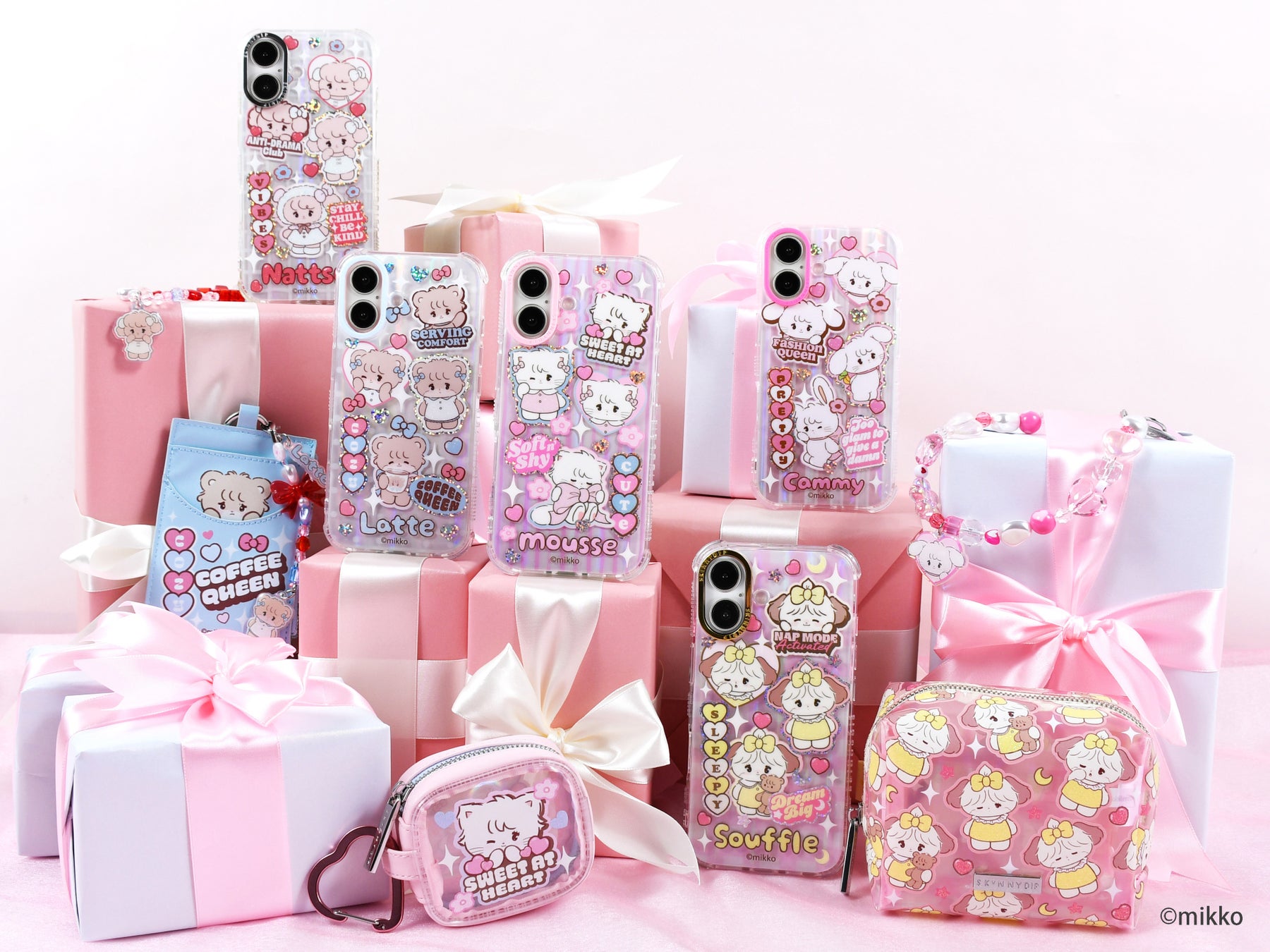 今回のコラボレーションでは、ムース、ラテ、キャミー、スフレ、ナッツの仲良しな5人が登場。それぞれのイメージカラーをメインに、キラキラとした輝きとキュートさをぎゅっと詰め込んだ、見ているだけで気分が上がるデザインに仕上げました。