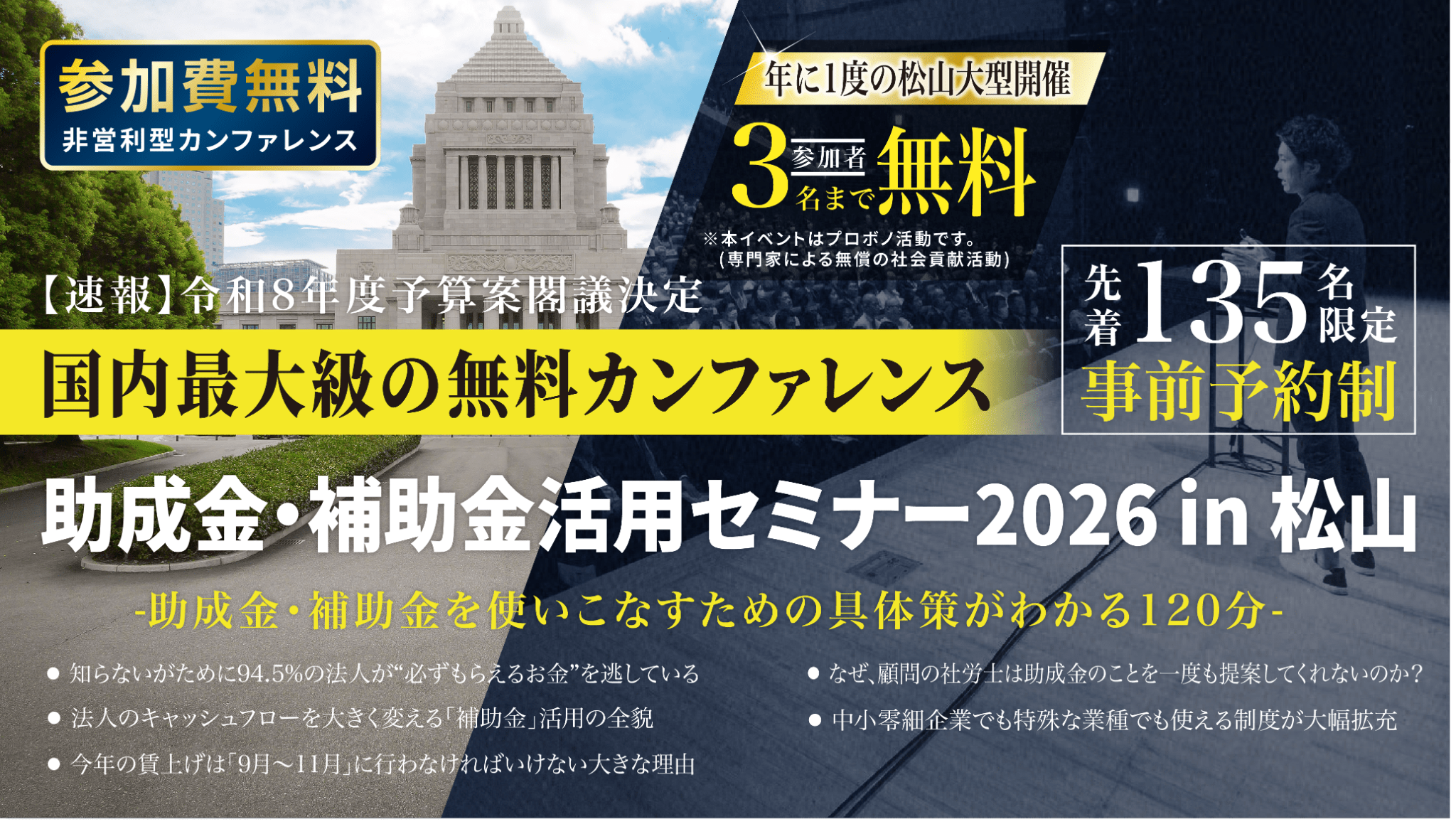 中小法人が今すぐ活用できる制度を解説「助成金•補助金活用セミナー2026 in 松山」6/2(火)開催