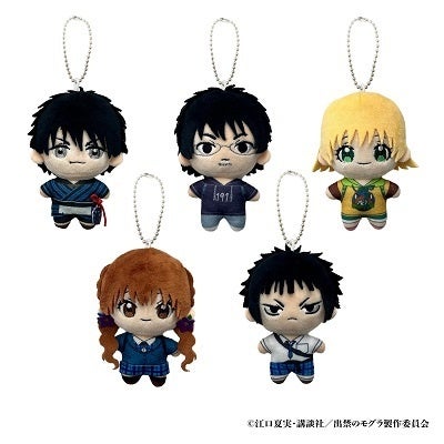 今回登場するのは、百暗桃弓木(もぐら ももゆき)、真木栗顕(まぎ くりあき)、桐原八重子(きりはら やえこ)、犬飼詩魚(いぬかい しお)、猫附梗史郎(ねこづく きょうしろう)の5人。「あの世から出禁をくらった」主人公モグラと、モグラをとりまく人気キャラクターたちがかわいいぷちマスコットになって登場します。