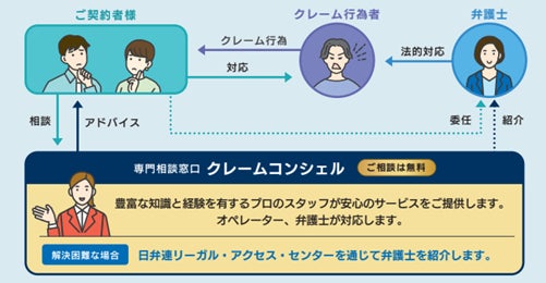 損保ジャパンが提供する専門相談窓口「クレームコンシェル」にて、カスハラに関する無料相談やアドバイスなどを受けることができます。