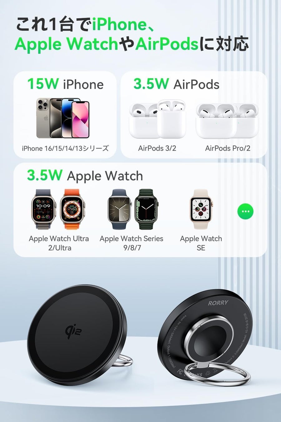 「A3Q」は、最新規格Qi2公式認証(qi-ID:22526)を取得した次世代型の3in1ワイヤレス充電器です。Qi1に比べ、最大15Wの高速出力と優れた放熱設計により、約30分でiPhone15を30%まで急速充電可能。忙しい日常や移動中でも、スピーディーかつ安全に充電が完了します。