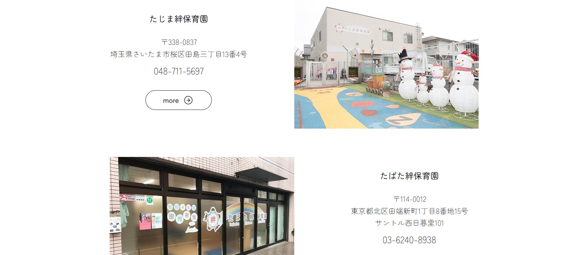 今回のリニューアルでは、東京と埼玉で運営する複数施設について、施設ごとの特徴や情報が比較しやすいよう構成を整理しました。