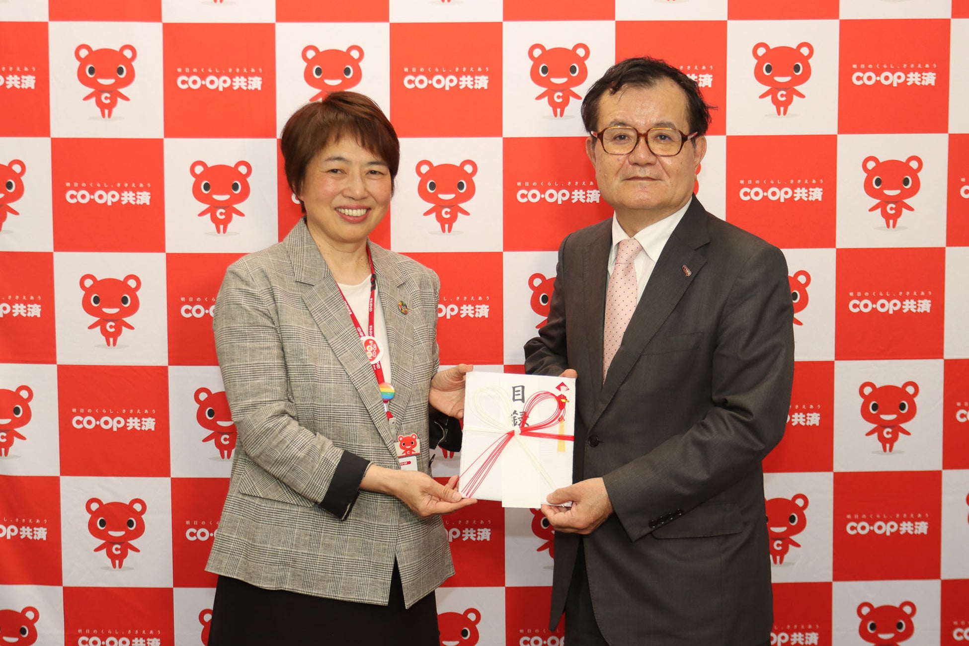 日本コープ共済生活協同組合連合会からたすけあい奨学制度への寄付金授与式が行われました