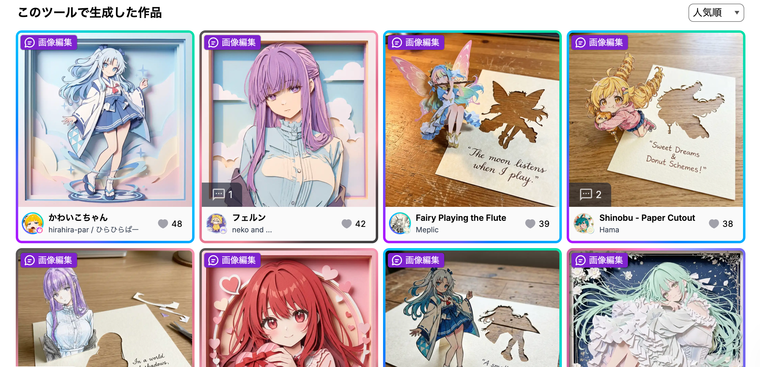 AI二次元創作プラットフォーム「PixAI」を運営する Metanomaly株式会社(本社:東京都渋谷区、代表取締役:レイブン・ガオ)は、キャラクター画像やオリジナルキャラクター(OC)をリアルな紙工芸風作品へ変換できる「人物切り絵生成ツール」を提供しています。